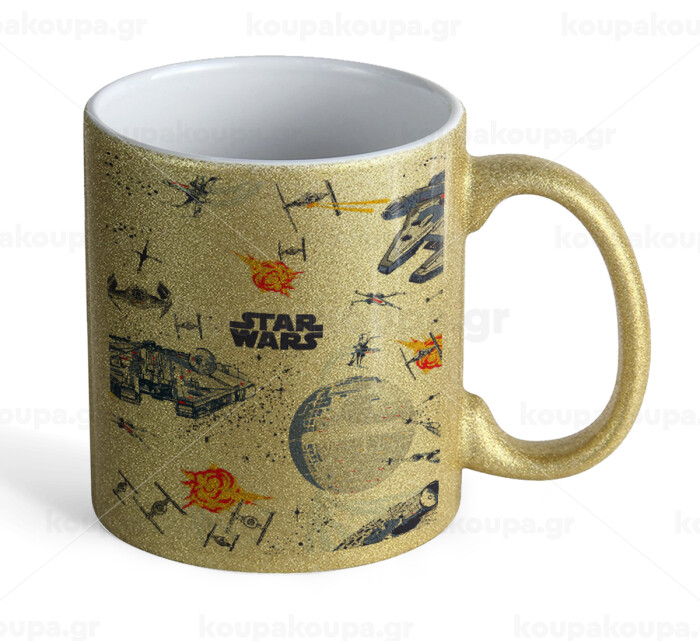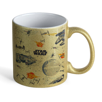 Star wars drawing, Κούπα Χρυσή Glitter που γυαλίζει, κεραμική, 330ml