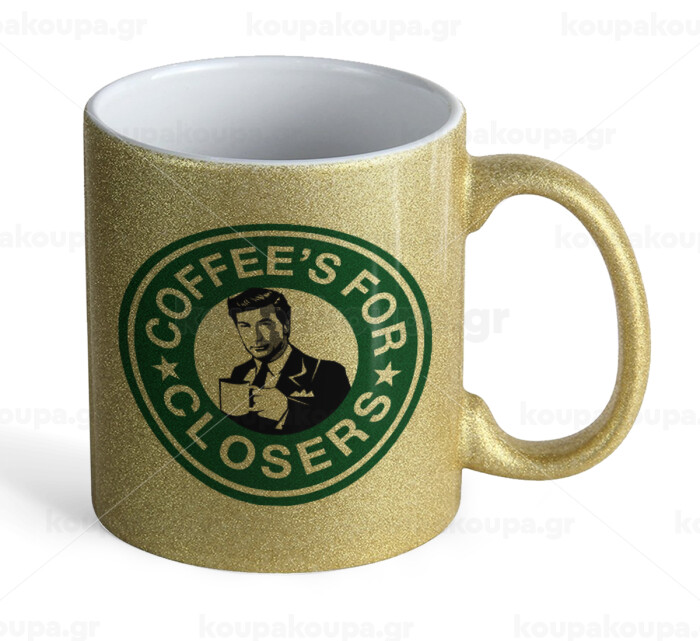 Coffee's for closers, Κούπα Χρυσή Glitter που γυαλίζει, κεραμική, 330ml