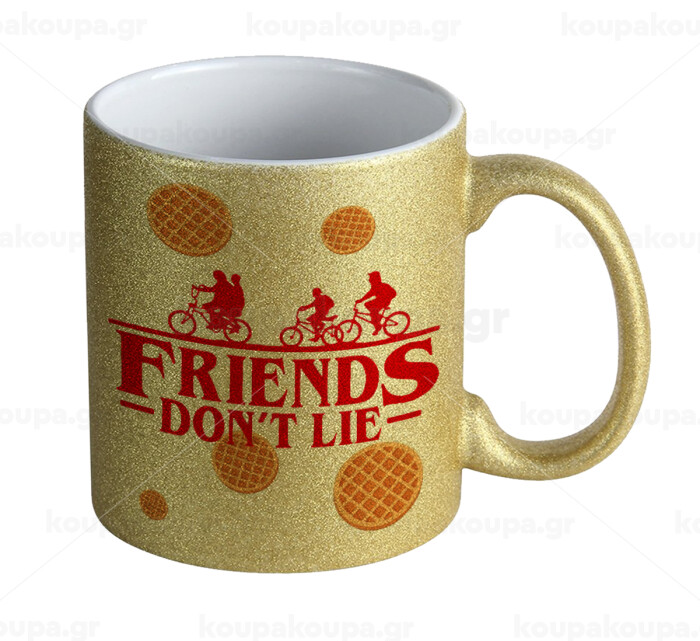 Friends Don't Lie, Stranger Things, Κούπα Χρυσή Glitter που γυαλίζει, κεραμική, 330ml