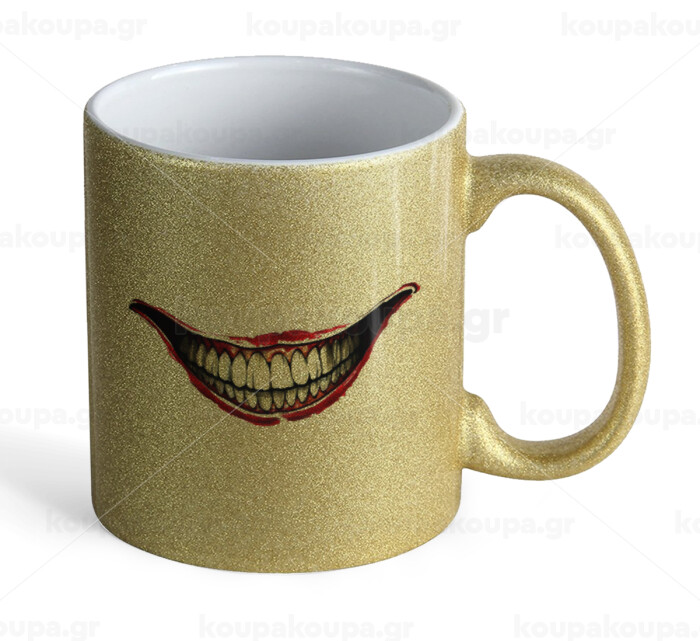 Joker smile, Κούπα Χρυσή Glitter που γυαλίζει, κεραμική, 330ml