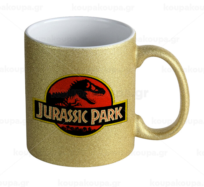Jurassic park, Κούπα Χρυσή Glitter που γυαλίζει, κεραμική, 330ml