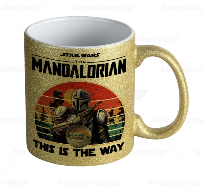 Mandalorian, Κούπα Χρυσή Glitter που γυαλίζει, κεραμική, 330ml
