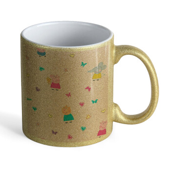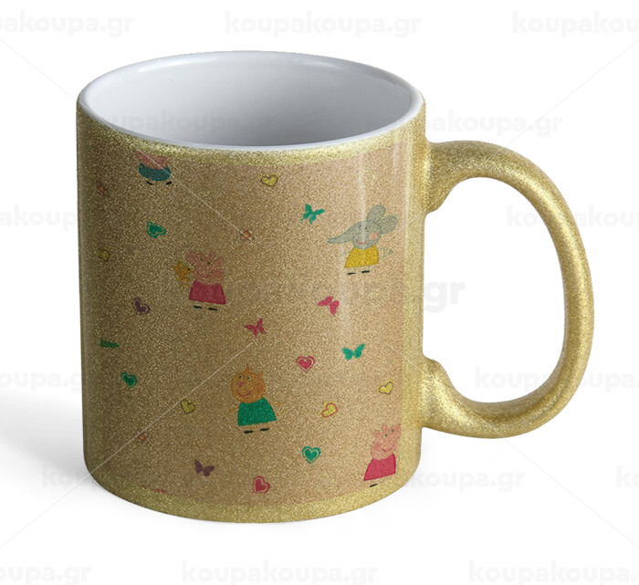 Πέππα το γουρουνάκι και οι φίλοι της, Κούπα Χρυσή Glitter που γυαλίζει, κεραμική, 330ml