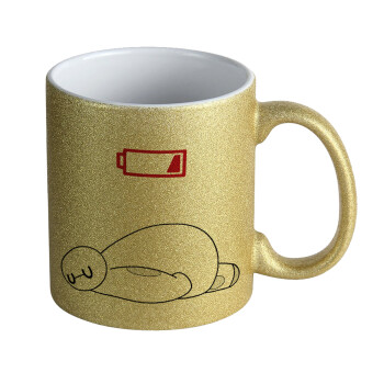 Baymax battery low, Κούπα Χρυσή Glitter που γυαλίζει, κεραμική, 330ml