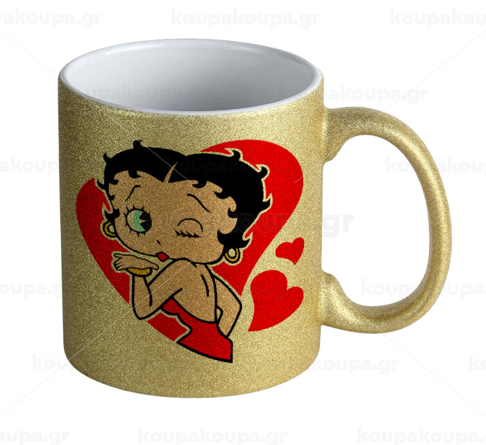 Betty Boop, Κούπα Χρυσή Glitter που γυαλίζει, κεραμική, 330ml