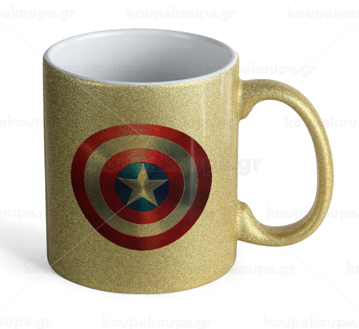 Captain America, Κούπα Χρυσή Glitter που γυαλίζει, κεραμική, 330ml