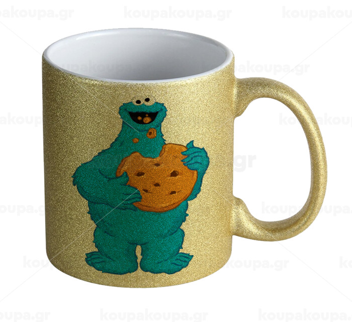 Cookie Monster, Κούπα Χρυσή Glitter που γυαλίζει, κεραμική, 330ml