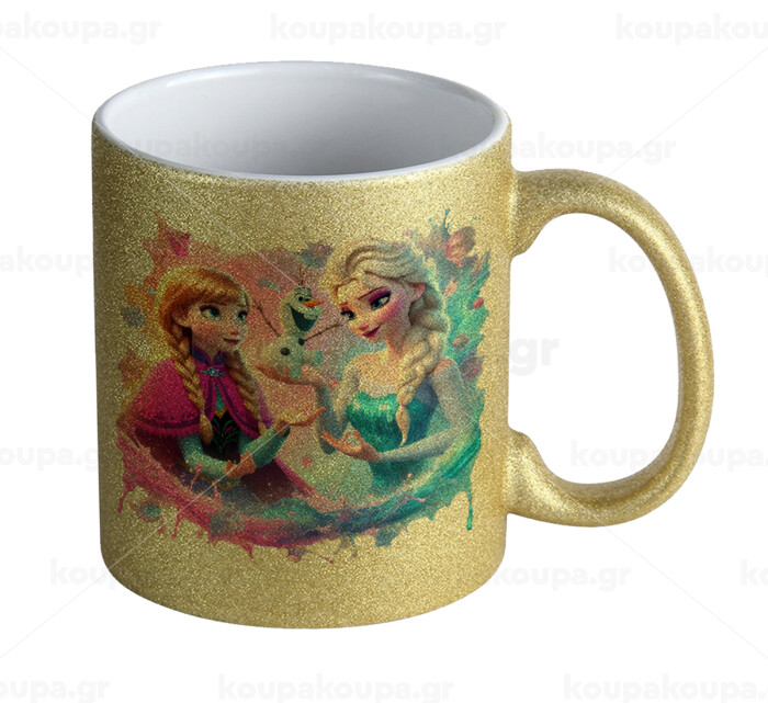 Elsa & Anna Princess, Κούπα Χρυσή Glitter που γυαλίζει, κεραμική, 330ml