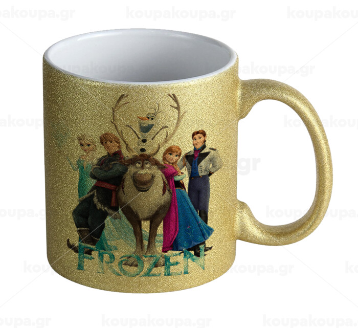 Frozen, Κούπα Χρυσή Glitter που γυαλίζει, κεραμική, 330ml