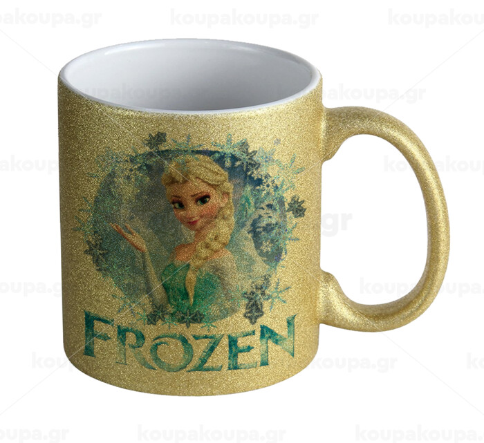 Frozen Elsa, Κούπα Χρυσή Glitter που γυαλίζει, κεραμική, 330ml