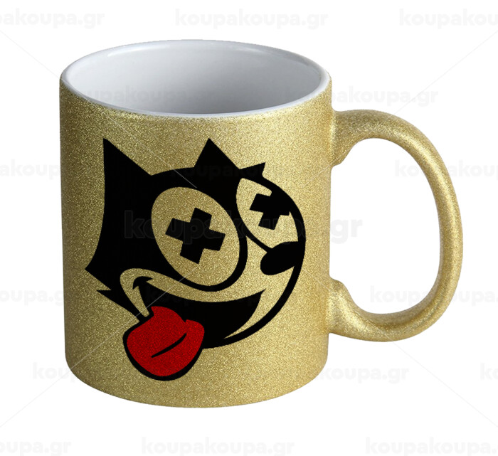 helix the cat, Κούπα Χρυσή Glitter που γυαλίζει, κεραμική, 330ml