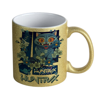 Huntrix Derpy the blue tiger, Κούπα Χρυσή Glitter που γυαλίζει, κεραμική, 330ml