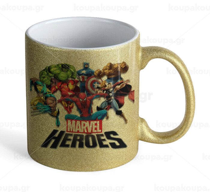 MARVEL heroes, Κούπα Χρυσή Glitter που γυαλίζει, κεραμική, 330ml