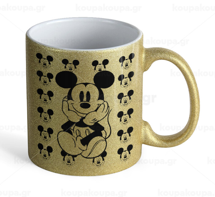 Mickey, Κούπα Χρυσή Glitter που γυαλίζει, κεραμική, 330ml