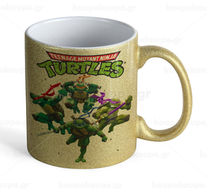 Ninja turtles, Κούπα Χρυσή Glitter που γυαλίζει, κεραμική, 330ml