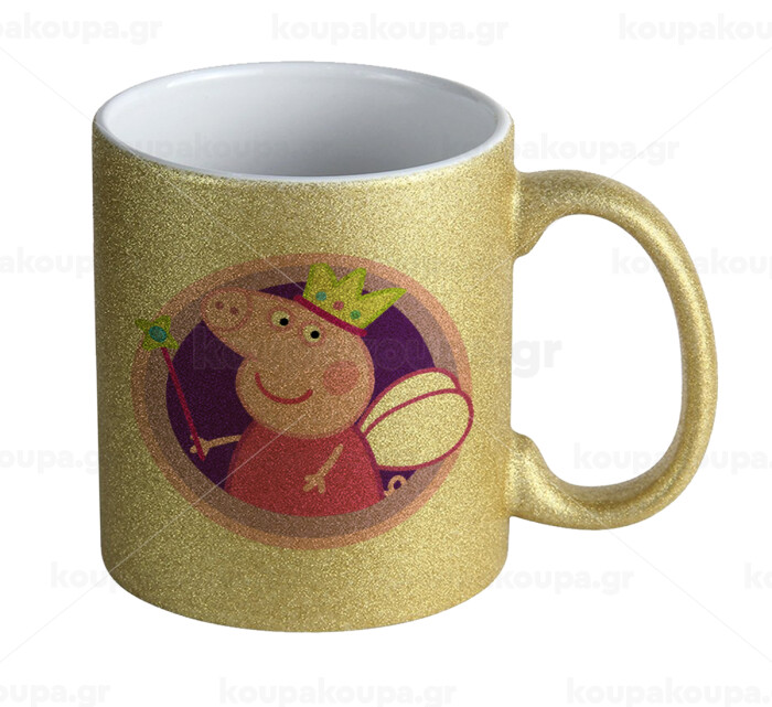 Peppa pig Queen, Κούπα Χρυσή Glitter που γυαλίζει, κεραμική, 330ml