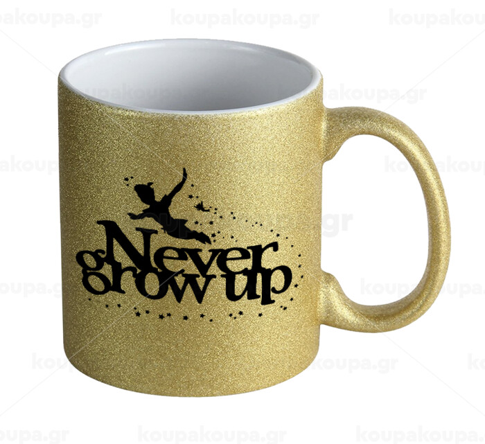Peter pan, Never Grow UP, Κούπα Χρυσή Glitter που γυαλίζει, κεραμική, 330ml