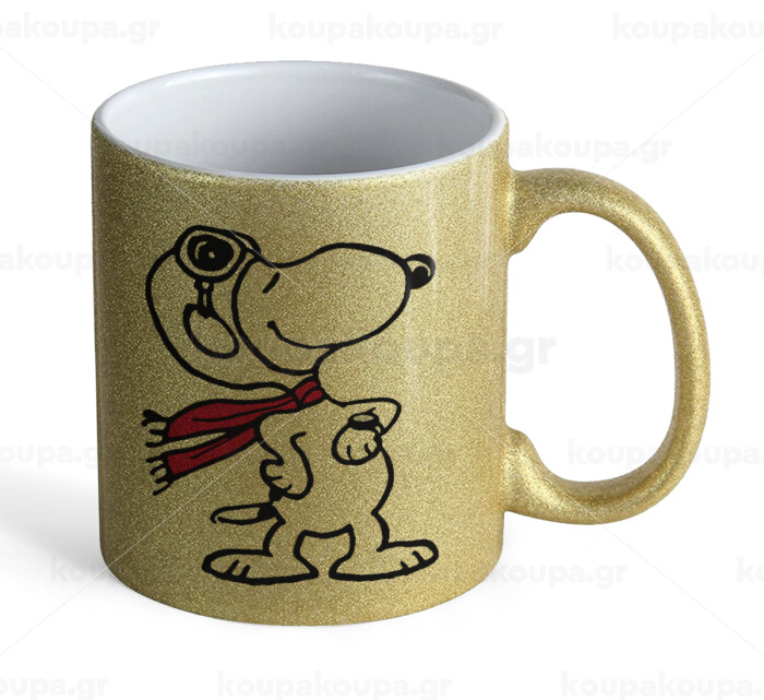 Snoopy ο πιλότος, Κούπα Χρυσή Glitter που γυαλίζει, κεραμική, 330ml