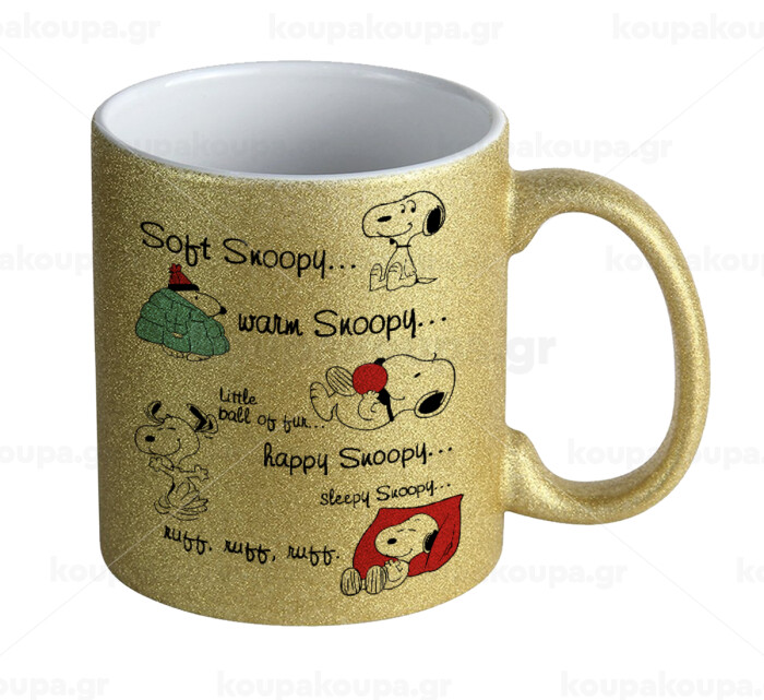 Snoopy manual, Κούπα Χρυσή Glitter που γυαλίζει, κεραμική, 330ml