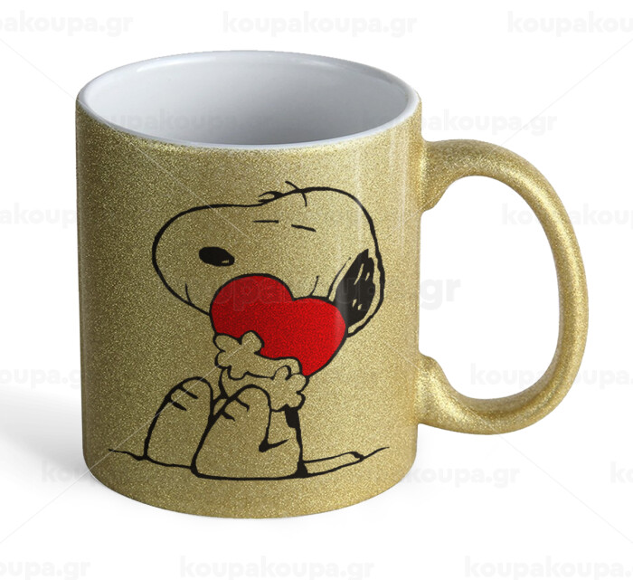 Snoopy, Κούπα Χρυσή Glitter που γυαλίζει, κεραμική, 330ml