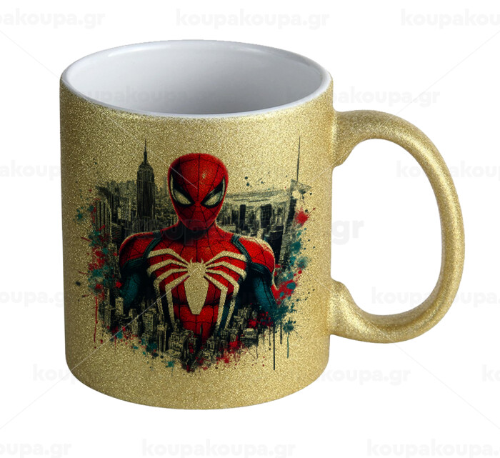 Spiderman City, Κούπα Χρυσή Glitter που γυαλίζει, κεραμική, 330ml