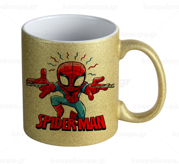 Spiderman flying, Κούπα Χρυσή Glitter που γυαλίζει, κεραμική, 330ml