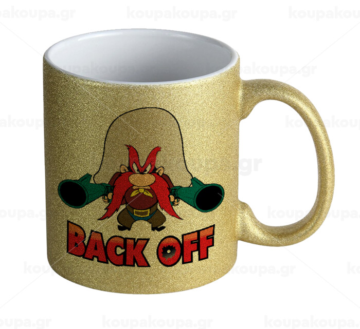 Yosemite Sam Back OFF, Κούπα Χρυσή Glitter που γυαλίζει, κεραμική, 330ml