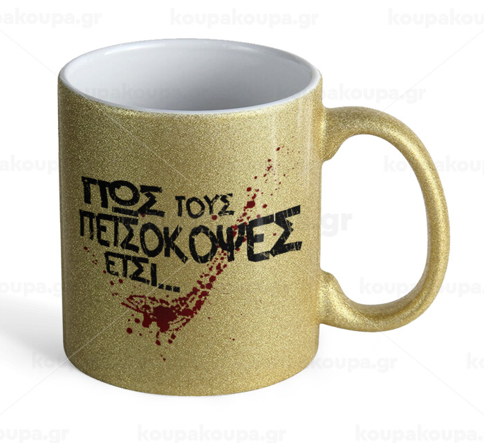 Πως τους πετσόκοψες έτσι..., Κούπα Χρυσή Glitter που γυαλίζει, κεραμική, 330ml