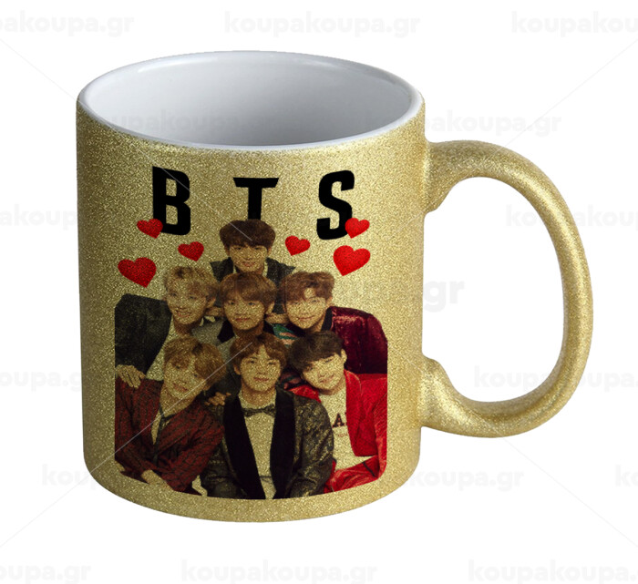 BTS hearts, Κούπα Χρυσή Glitter που γυαλίζει, κεραμική, 330ml