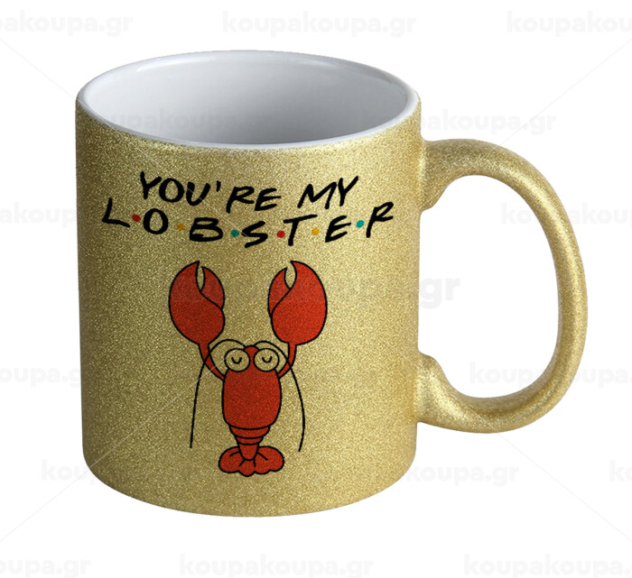 Friends you're my lobster, Κούπα Χρυσή Glitter που γυαλίζει, κεραμική, 330ml