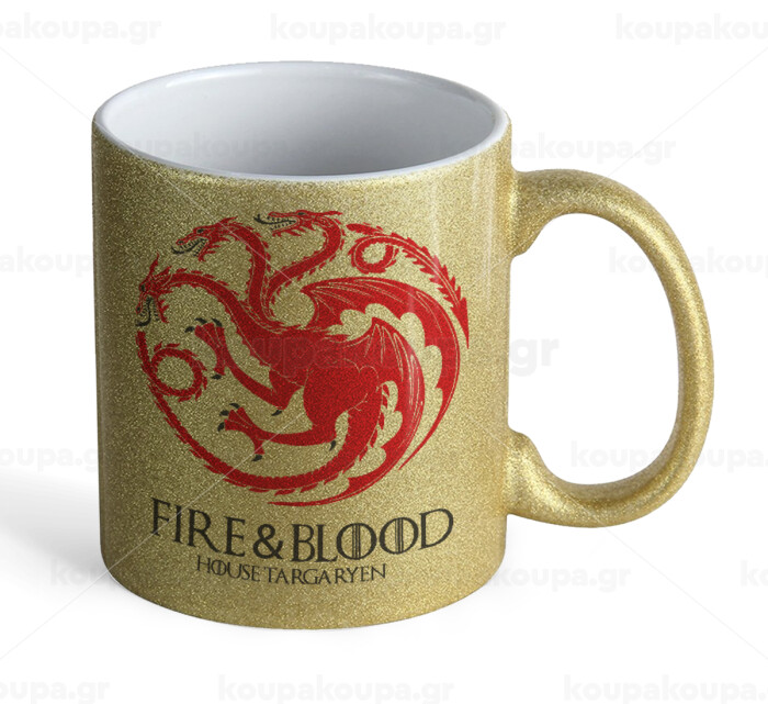 GOT House Targaryen, Fire Blood, Κούπα Χρυσή Glitter που γυαλίζει, κεραμική, 330ml
