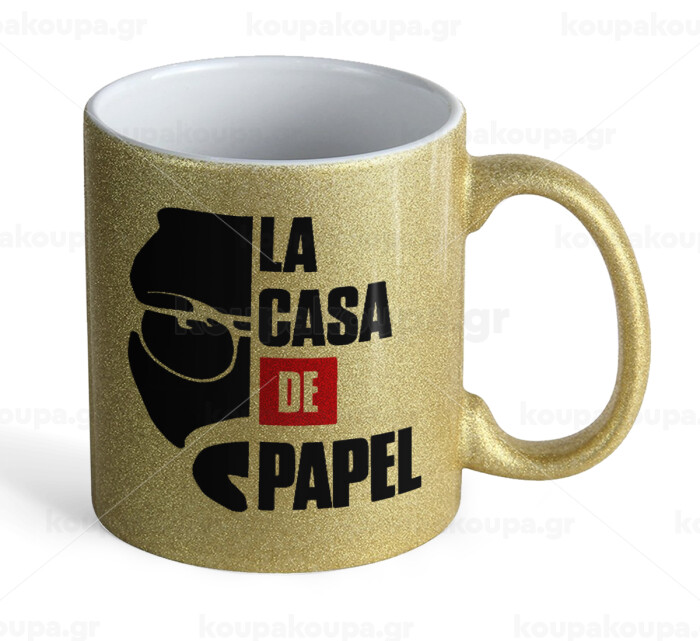 La casa de papel, Κούπα Χρυσή Glitter που γυαλίζει, κεραμική, 330ml