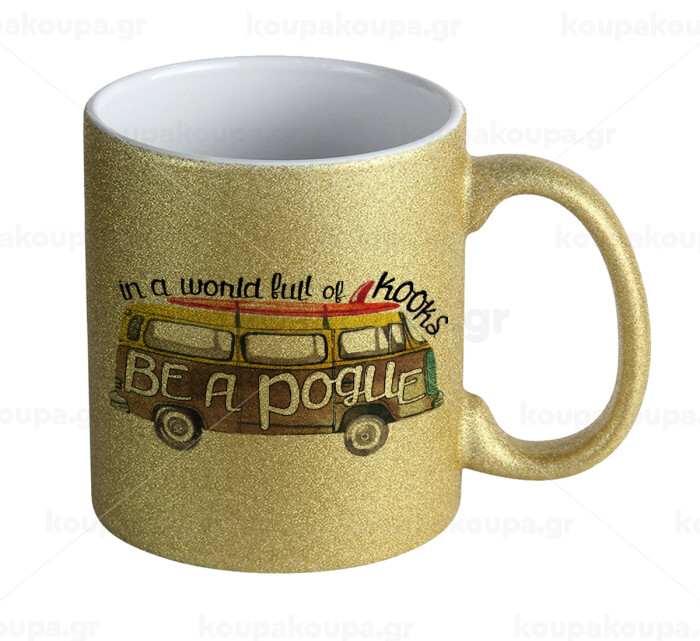 Outerbanks Pogue Life, Κούπα Χρυσή Glitter που γυαλίζει, κεραμική, 330ml