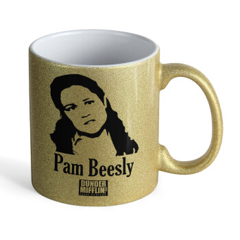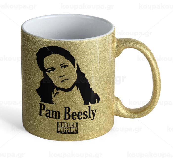 The office Pam Beesly, Κούπα Χρυσή Glitter που γυαλίζει, κεραμική, 330ml