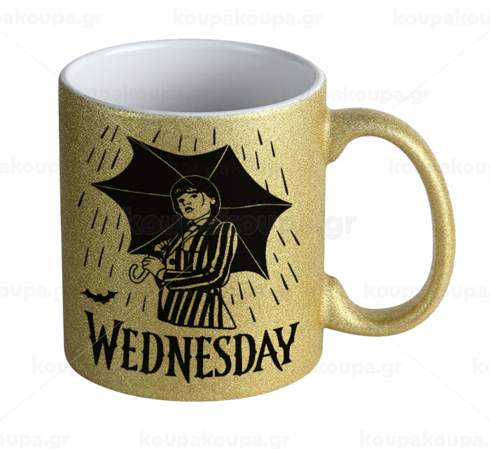 Wednesday Addams, Κούπα Χρυσή Glitter που γυαλίζει, κεραμική, 330ml