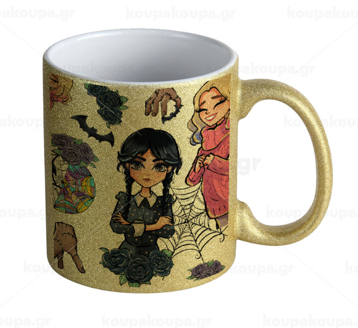Wednesday and Enid Sinclair, Κούπα Χρυσή Glitter που γυαλίζει, κεραμική, 330ml