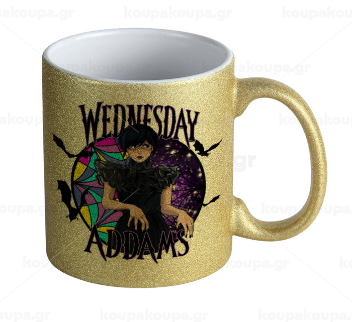 Wednesday Jenna Ortega, Κούπα Χρυσή Glitter που γυαλίζει, κεραμική, 330ml