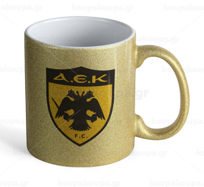 ΑΕΚ, Κούπα Χρυσή Glitter που γυαλίζει, κεραμική, 330ml