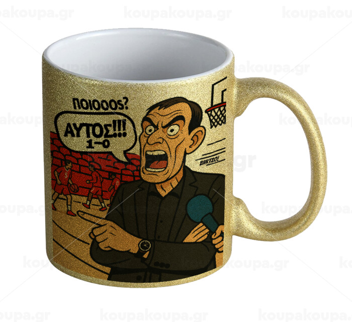 Μπαρτζό, Ποιος? Αυτός!!! 1-0, Κούπα Χρυσή Glitter που γυαλίζει, κεραμική, 330ml