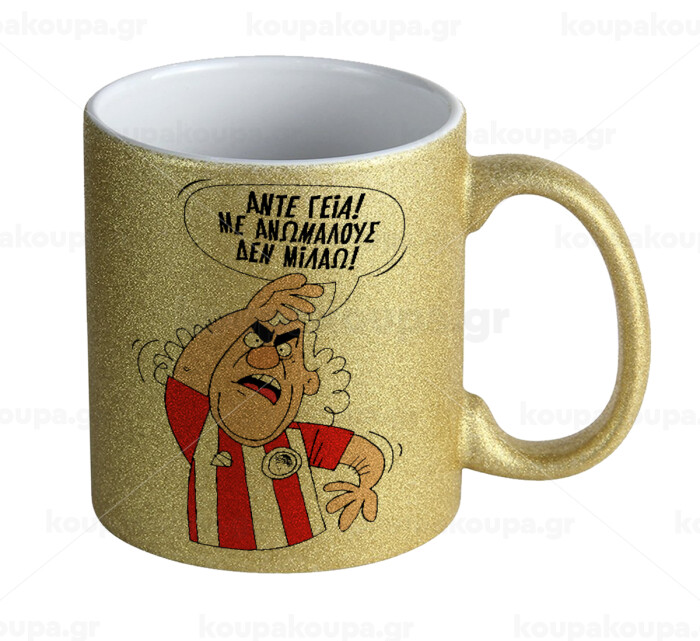Τάκης, Άντε γεια, με ανώμαλους δεν μιλάω!, Κούπα Χρυσή Glitter που γυαλίζει, κεραμική, 330ml