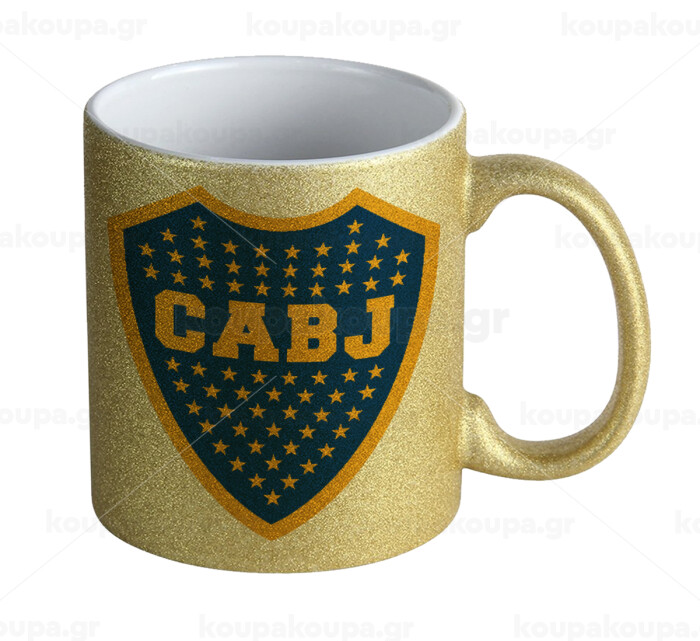 Club Atlético Boca Juniors, Κούπα Χρυσή Glitter που γυαλίζει, κεραμική, 330ml