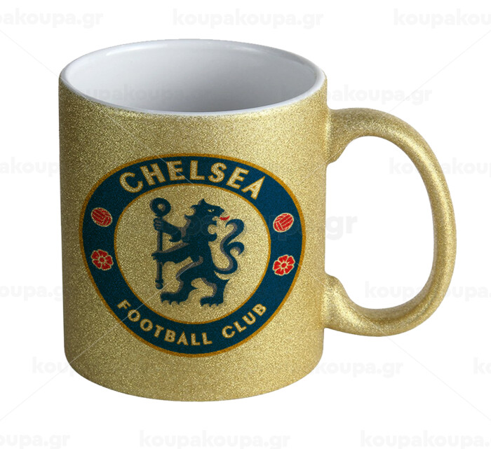 FC Chelsea, Κούπα Χρυσή Glitter που γυαλίζει, κεραμική, 330ml