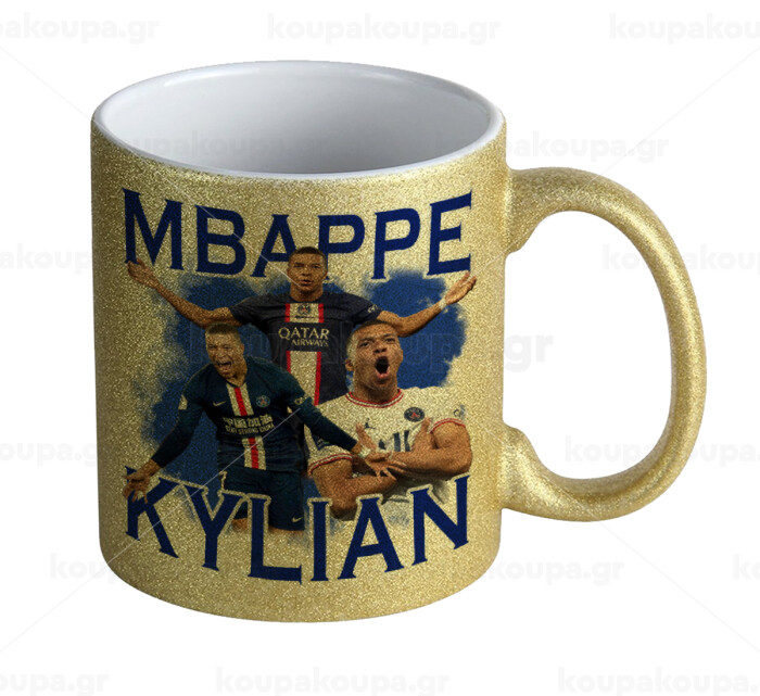 Kylian Mbappé, Κούπα Χρυσή Glitter που γυαλίζει, κεραμική, 330ml