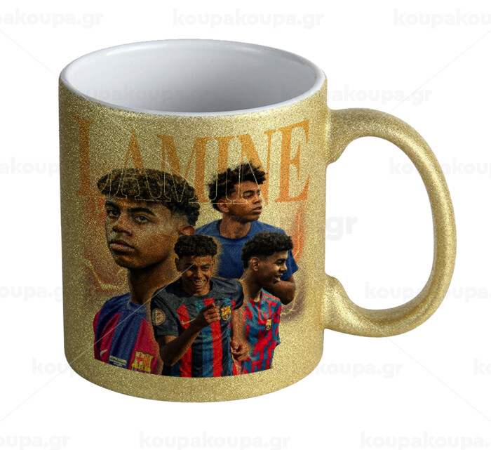 lamine yamal FCB, Κούπα Χρυσή Glitter που γυαλίζει, κεραμική, 330ml