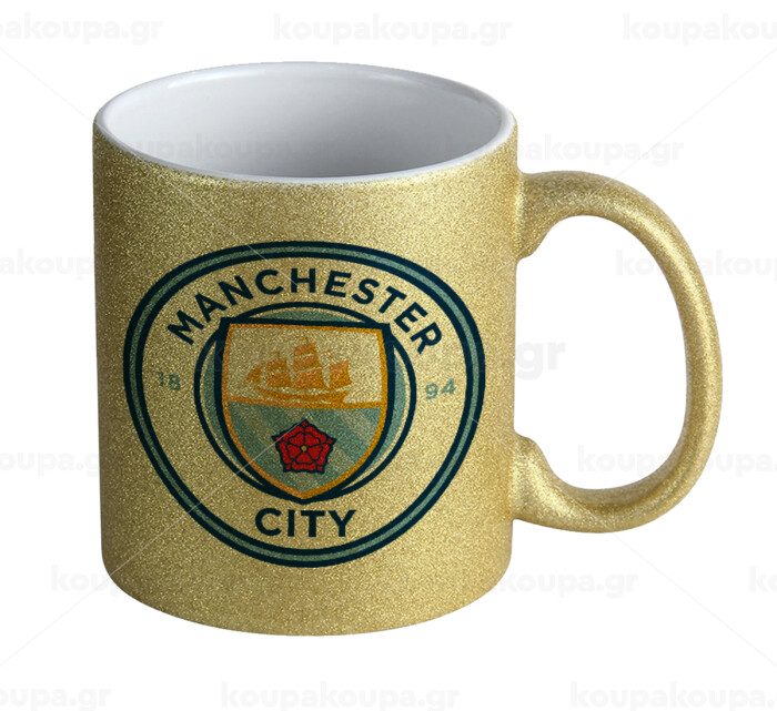 Manchester City FC , Κούπα Χρυσή Glitter που γυαλίζει, κεραμική, 330ml