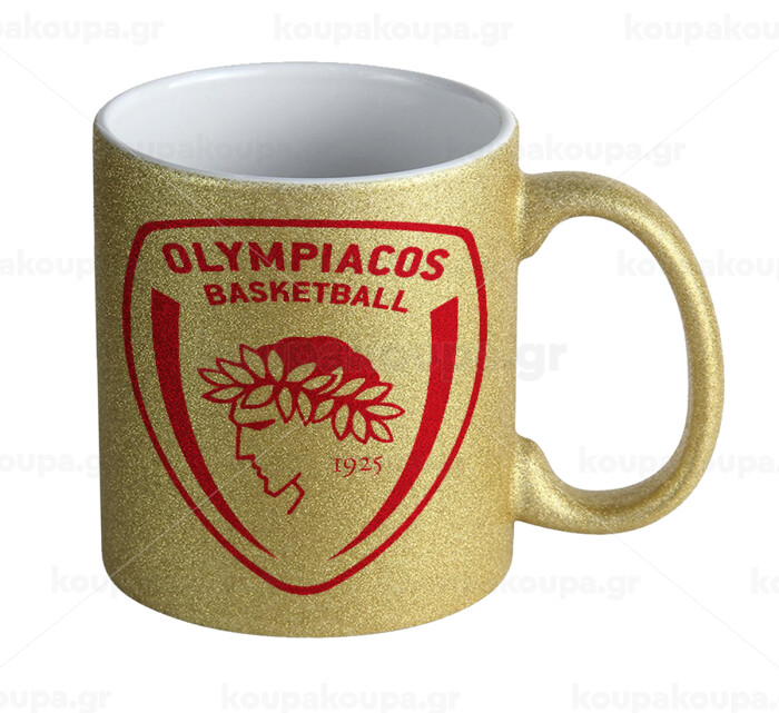 Olympiacos B.C., Κούπα Χρυσή Glitter που γυαλίζει, κεραμική, 330ml