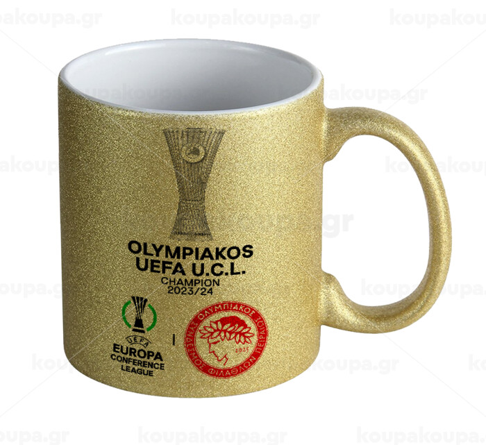 Olympiacos UEFA Europa Conference League Champion 2023/24, Κούπα Χρυσή Glitter που γυαλίζει, κεραμική, 330ml