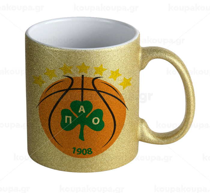 PAO BC, Κούπα Χρυσή Glitter που γυαλίζει, κεραμική, 330ml