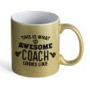 This is what an awesome COACH looks like!, Κούπα Χρυσή Glitter που γυαλίζει, κεραμική, 330ml