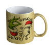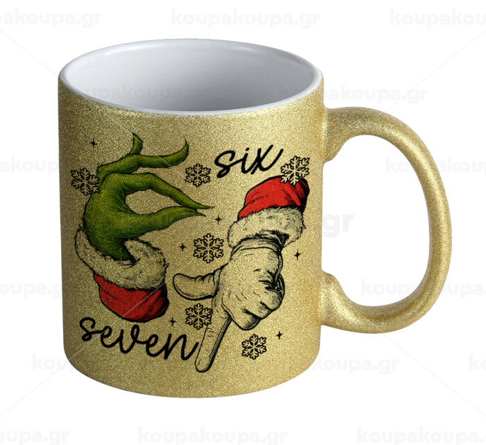 Christmas Meme SIX SEVEN (67), Κούπα Χρυσή Glitter που γυαλίζει, κεραμική, 330ml
